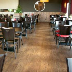 Bij pannenkoekenbakkerij Reuvershoeve hebben we een stevige PVC vloer gelegd in het eetgedeelte en schoonloopmatten en borstelmatten bij de entree om de vloer optimaal te beschermen.